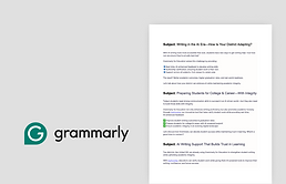 Grammarly for Education is the trusted AI writing partner built for the needs of the educational institution. Grammarly's communication assistance is fine-tuned to help everyone at an institution brainstorm, draft, revise, and submit their most compelling and authentic work.